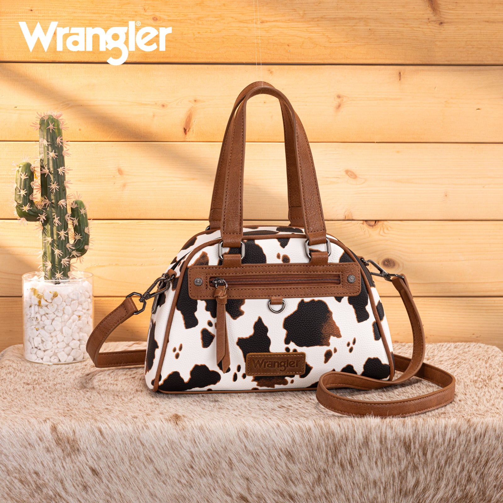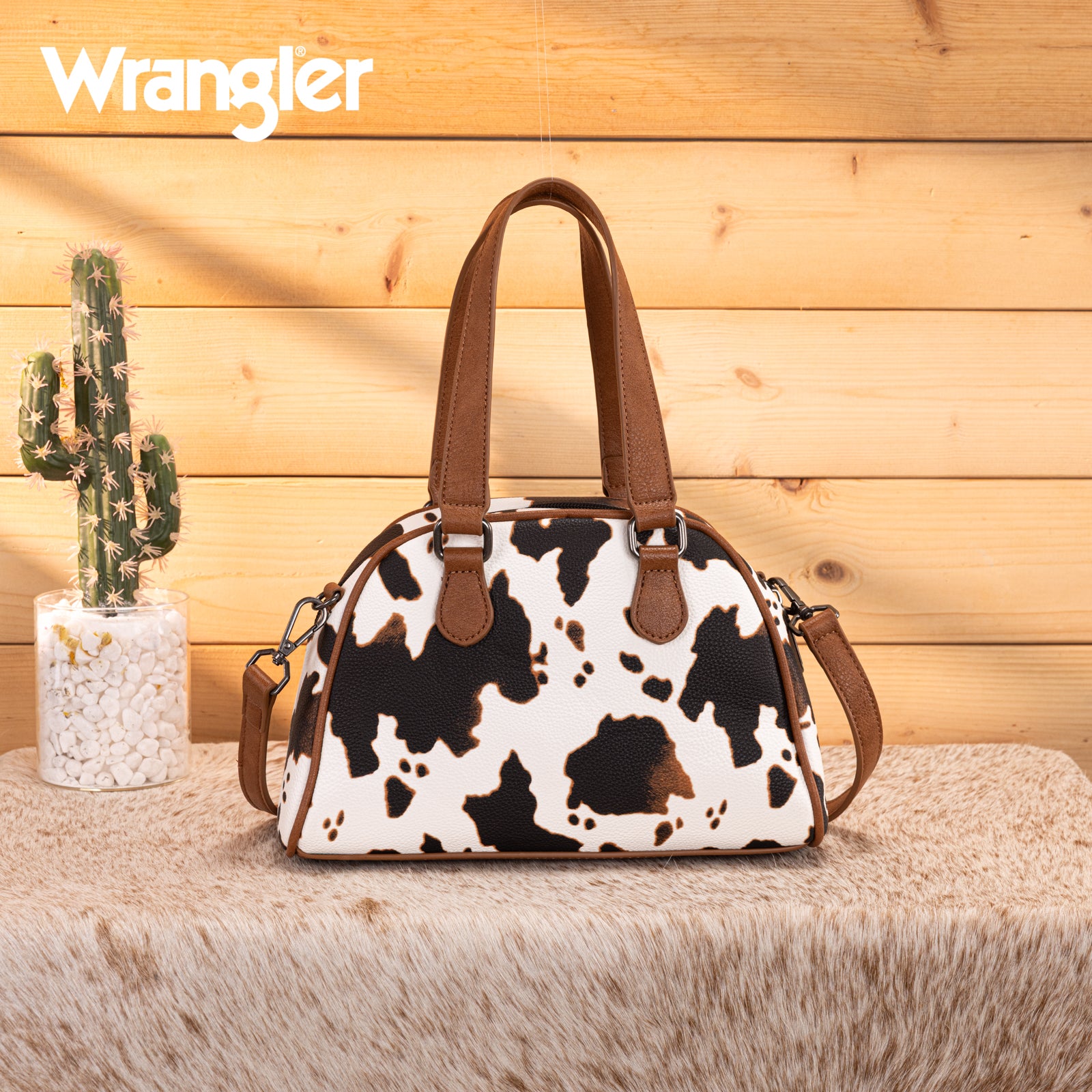 WG399-5112 Wrangler Cow Print Satchel/Crossbody Bag-BR-COW
