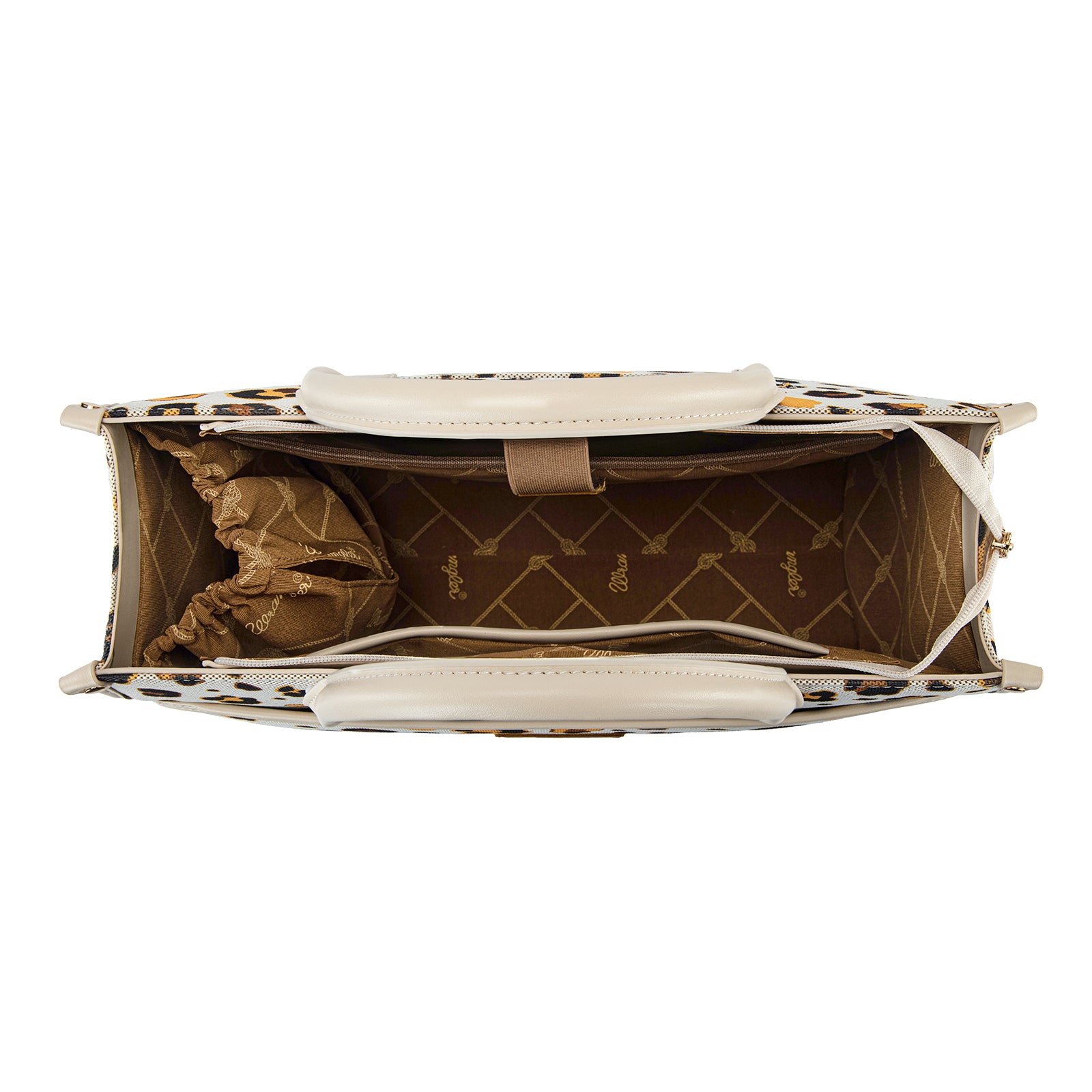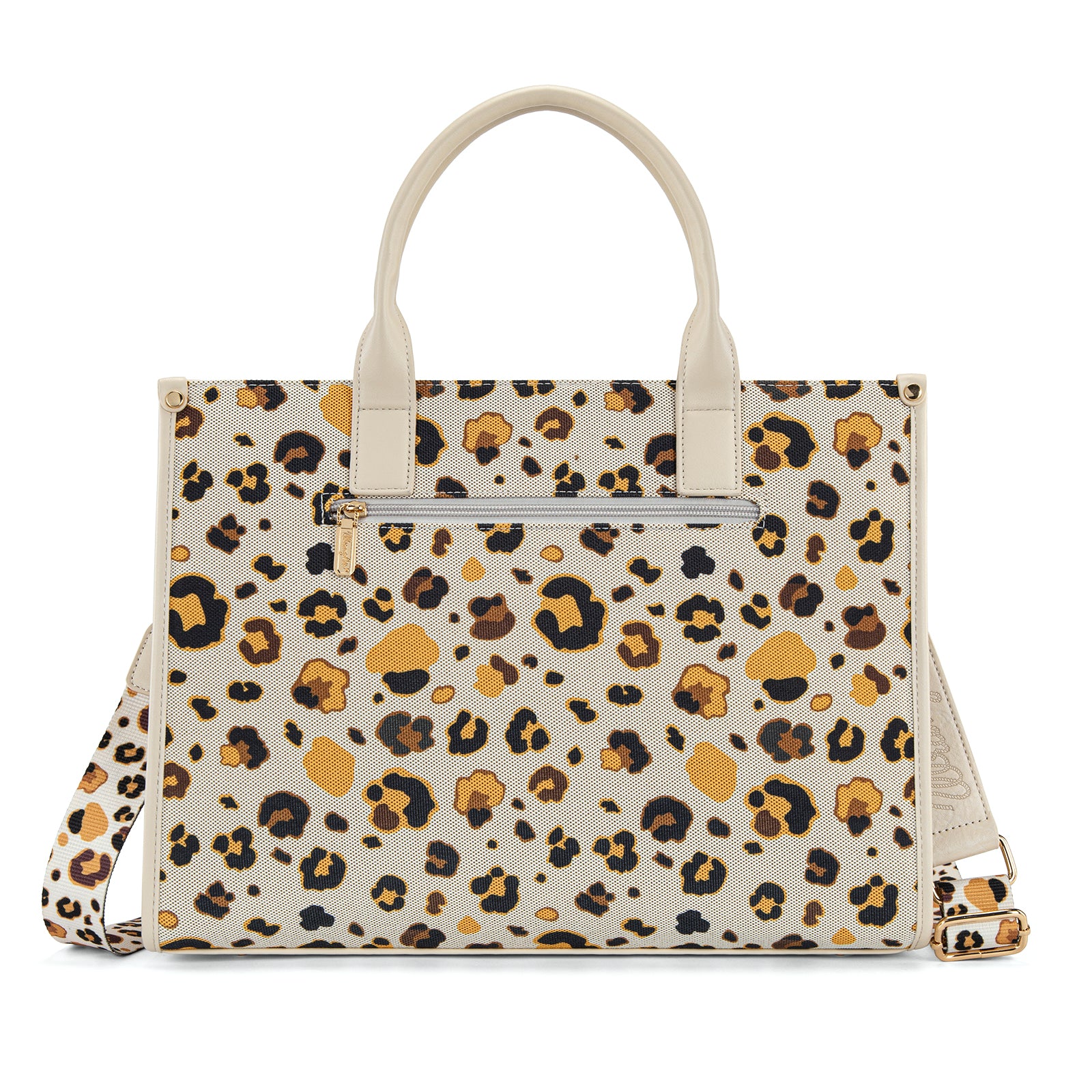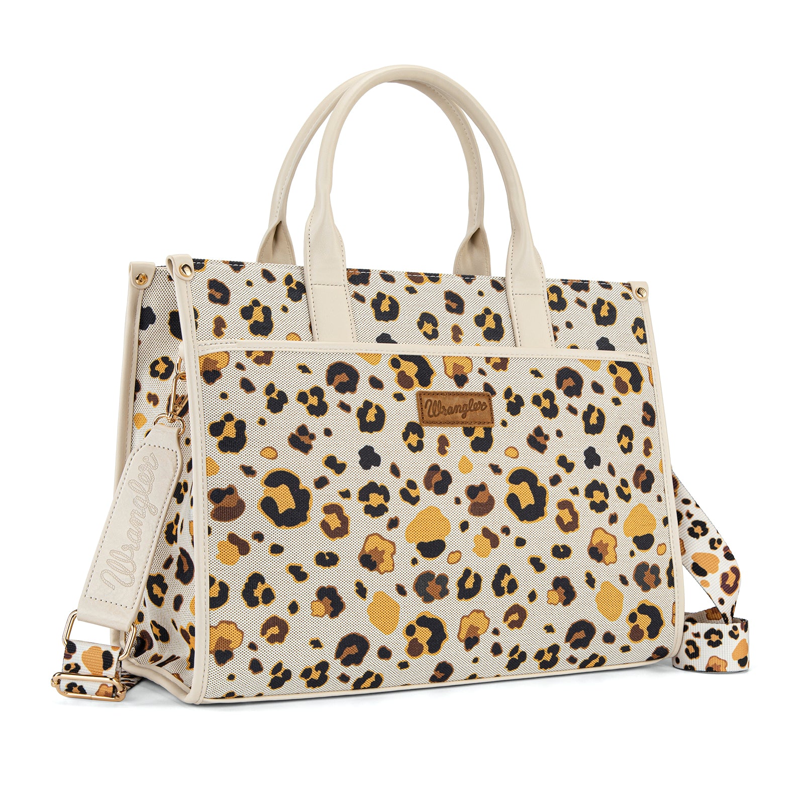 WG436-8119BG Wrangler Leopard Print Canvas Oversized Tote with Adjustable Strap- Beige