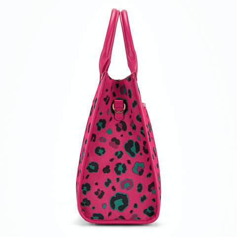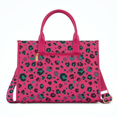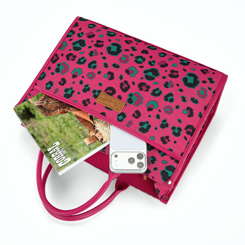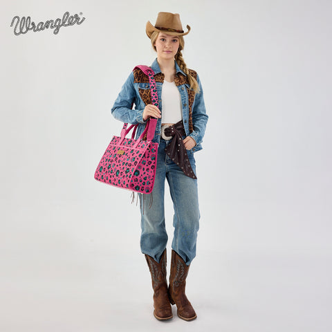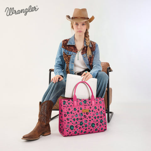 WG436-8119HPK Wrangler Leopard Print Canvas Oversized Tote with Adjustable Strap- Hot Pink