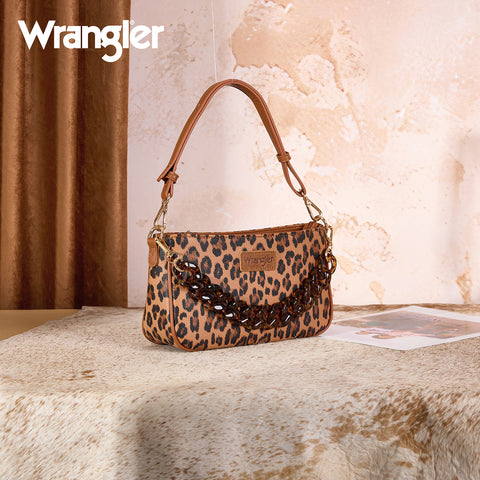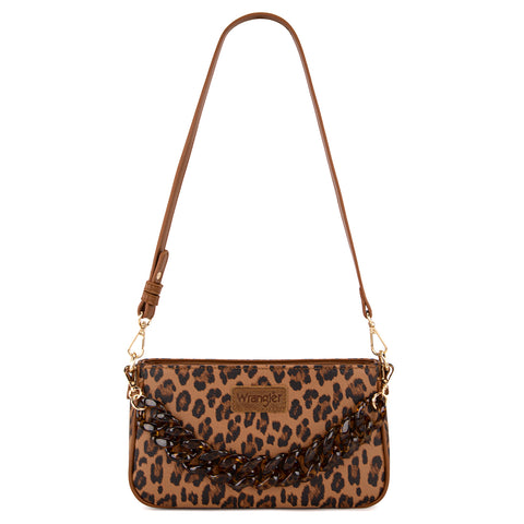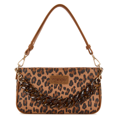 WG474-8633 Wrangler Western Leopard Print Shoulder Bag with Chain Detail -Brown