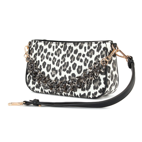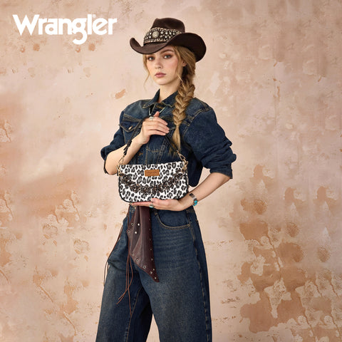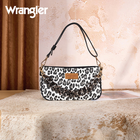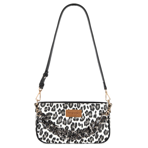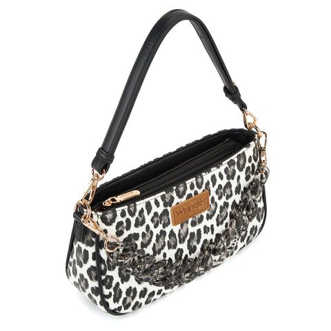 WG474-8633 Wrangler Western Leopard Print Shoulder Bag with Chain Detail - Black