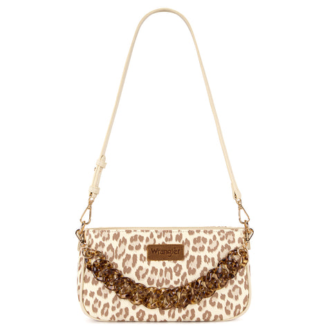 WG474-8633 Wrangler Western Leopard Print Shoulder Bag with Chain Detail -Tan
