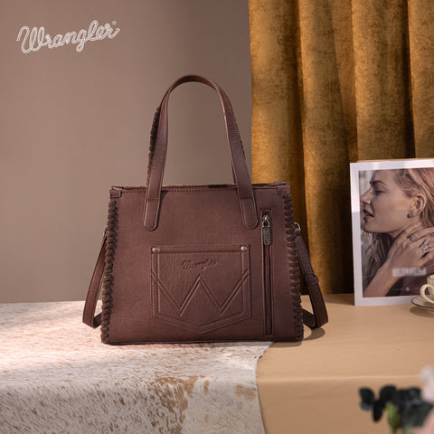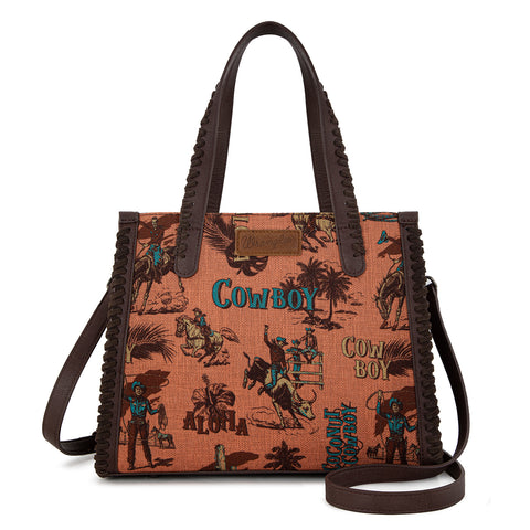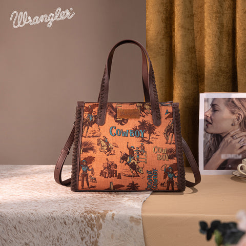 WG60G-8317 Wrangler Vintage Retro Cowboy Cool Print Concealed Carry Satchel/Crossbody-Dark Brown