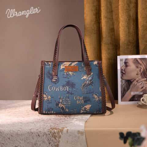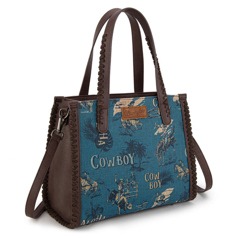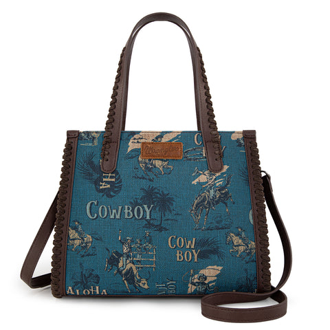 WG60G-8317 Wrangler Vintage Retro Cowboy Cool Print Concealed Carry Satchel/Crossbody -Jean