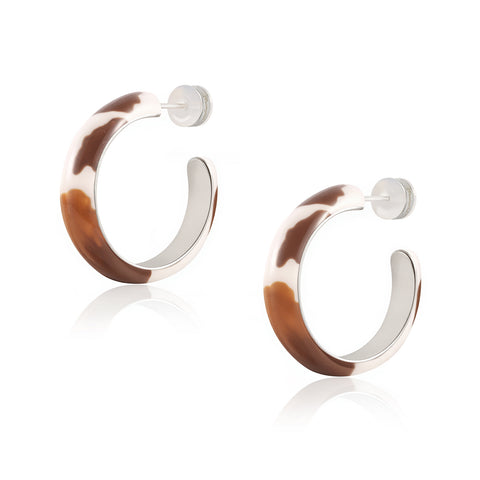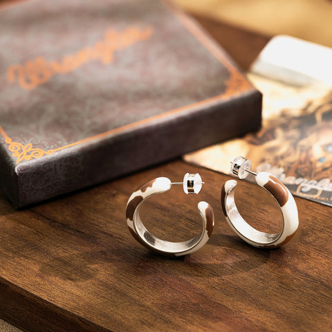 WGE-CW-1132S Wrangler Cow Print Hoop Earrings -Coffee