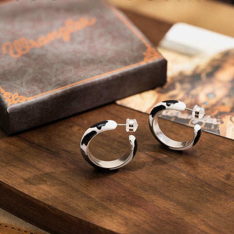 WGE-CW-1132S Wrangler Cow Print Hoop Earrings -Black