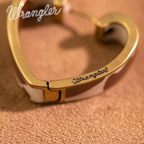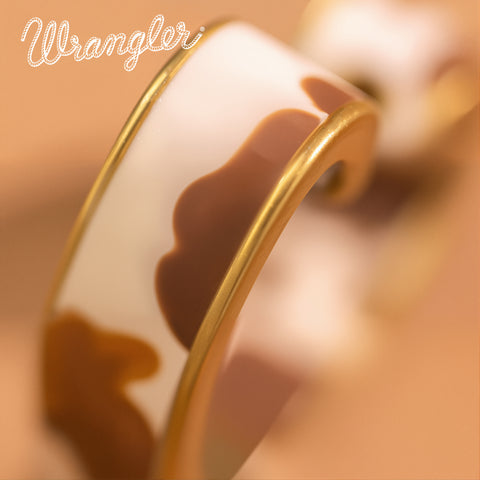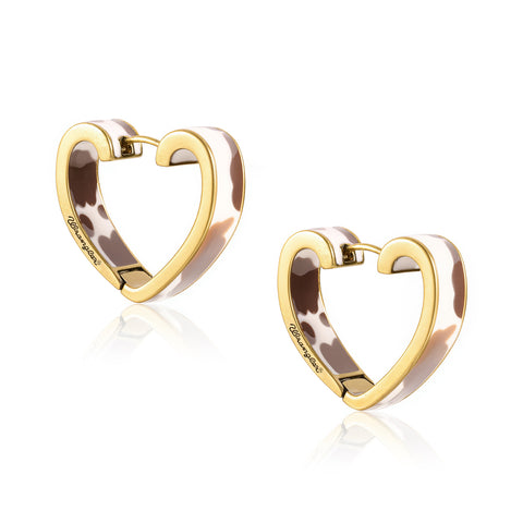 WGE-HCW-1135G Wrangler Cow Print Open Heart Shape Earrings -Coffee