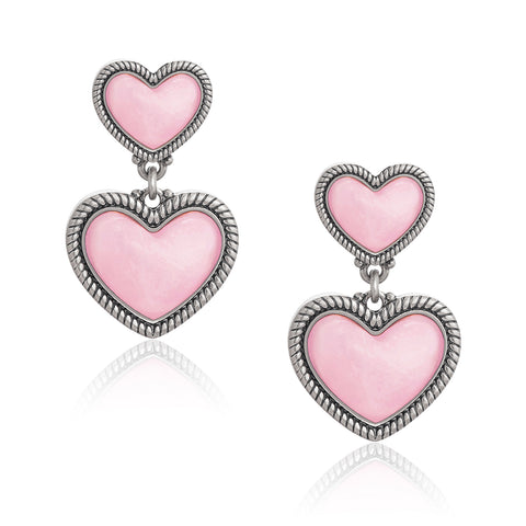 WGE-HT-1134S  Wrangler Natural Stone Heart Shape Dangling Earrings -Pink