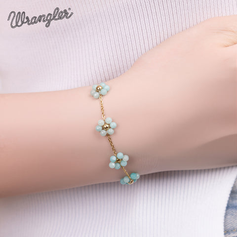 WGW-1103BK Wrangler 14k Gold Western Natural Stone Daisy Chain Bracelet -Green