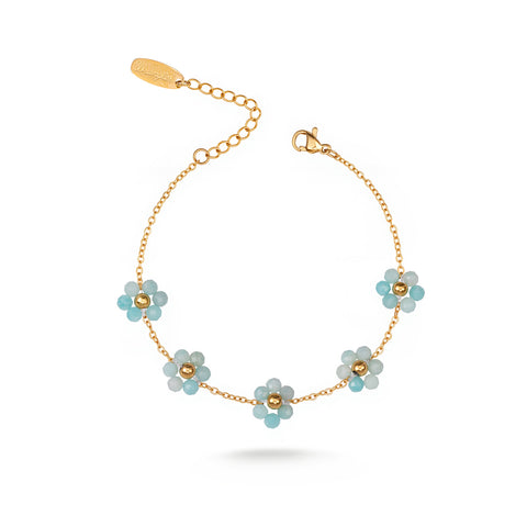 Made with titanium steel and plated in 14K gold. Each natural stone is unique, have been finely multi-faceted cut to make our beaded flower shimmer Bracelet Chain Length: 6.5"+1.4" (extension) Each beaded...