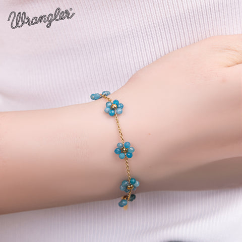 WGW-1103TQ Wrangler 14k Gold Western Natural Stone Daisy Chain Bracelet -Turquoise