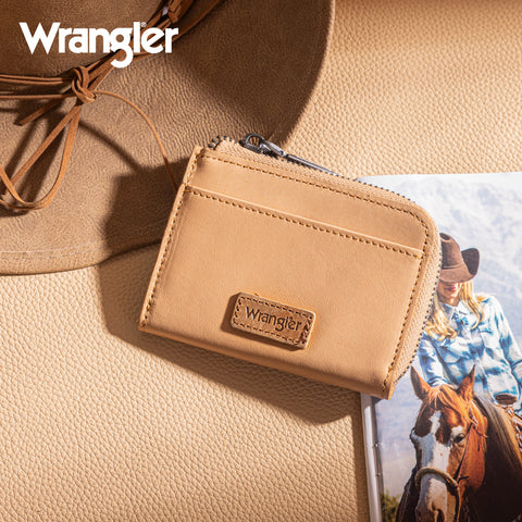 Made of Genuine Leather, this RFID wallet has: Wrangler logo An open pocket on the front and on the back Zip around closure 4 credit card slots RFID Protected  ...