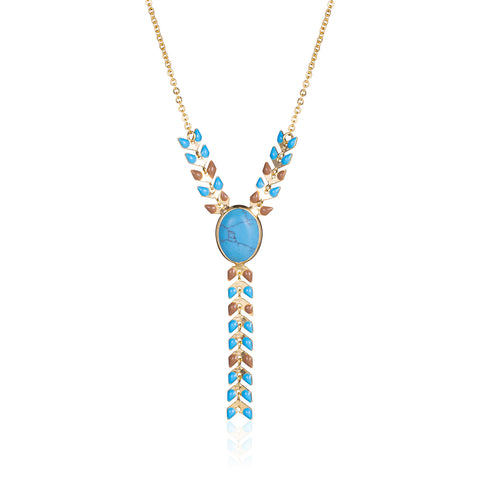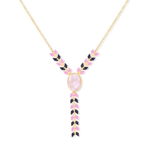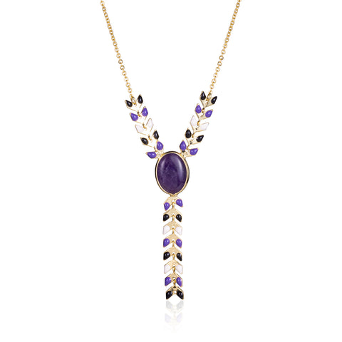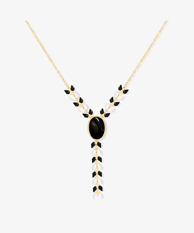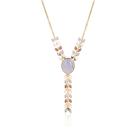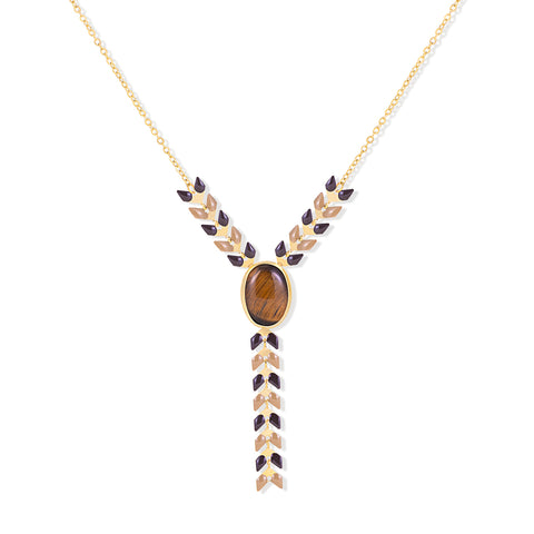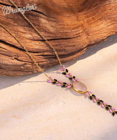 Y-wheat design necklace Oval shaped pendant Material: 18K Gold-plated stainless steel Gemstone Pendant: Black Onyx / Rose Quartz / Tiger's Eye/Moonstone / Amethyst Chain Type: Cable Closure: Lobster Claw Clasp...