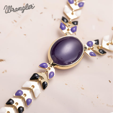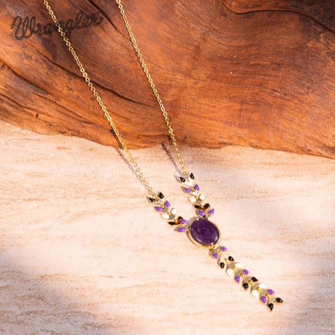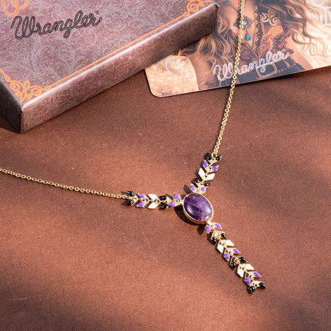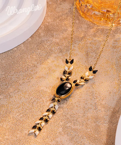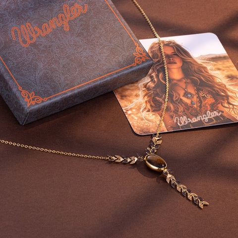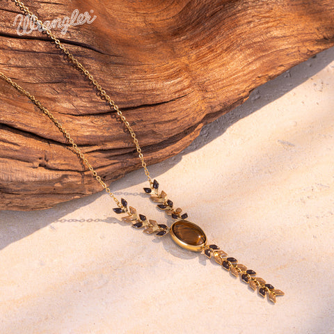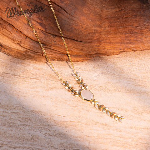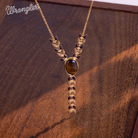 WNS-1057 Wrangler 14K Gold Western Y Necklace Oval Shaped Natural Stone Pendant