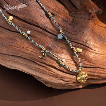 WNS-1076 Wrangler Western 14K Rope Chain Necklace Charm Sunburst Pendant