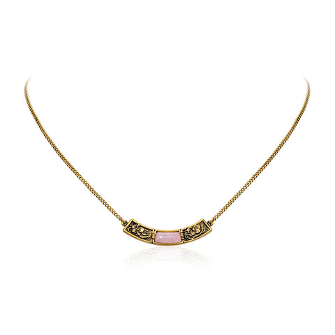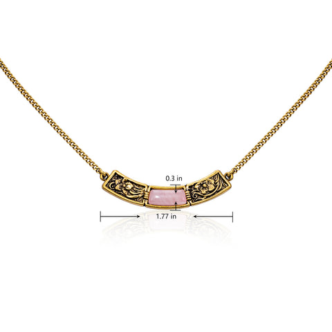 WNS-STL-1119GPK Wrangler Natural Stone Gold Engraved Necklace -Pink