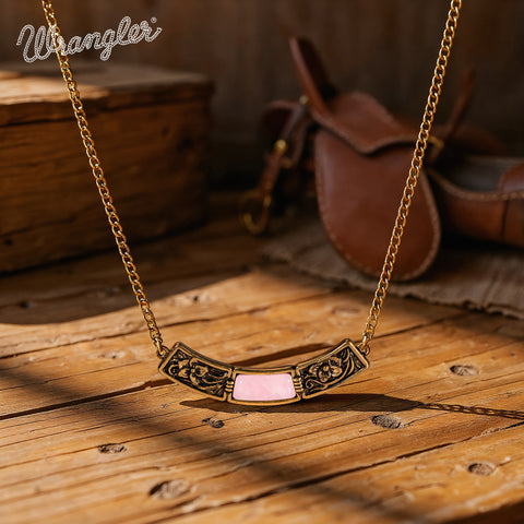 WNS-STL-1119GPK  Wrangler Natural Stone Gold Engraved Necklace -Pink