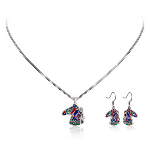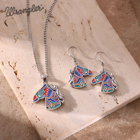 WNS2-2001S Wrangler Jewelry Horse Head Pendant Necklace Earrings Set -Silver